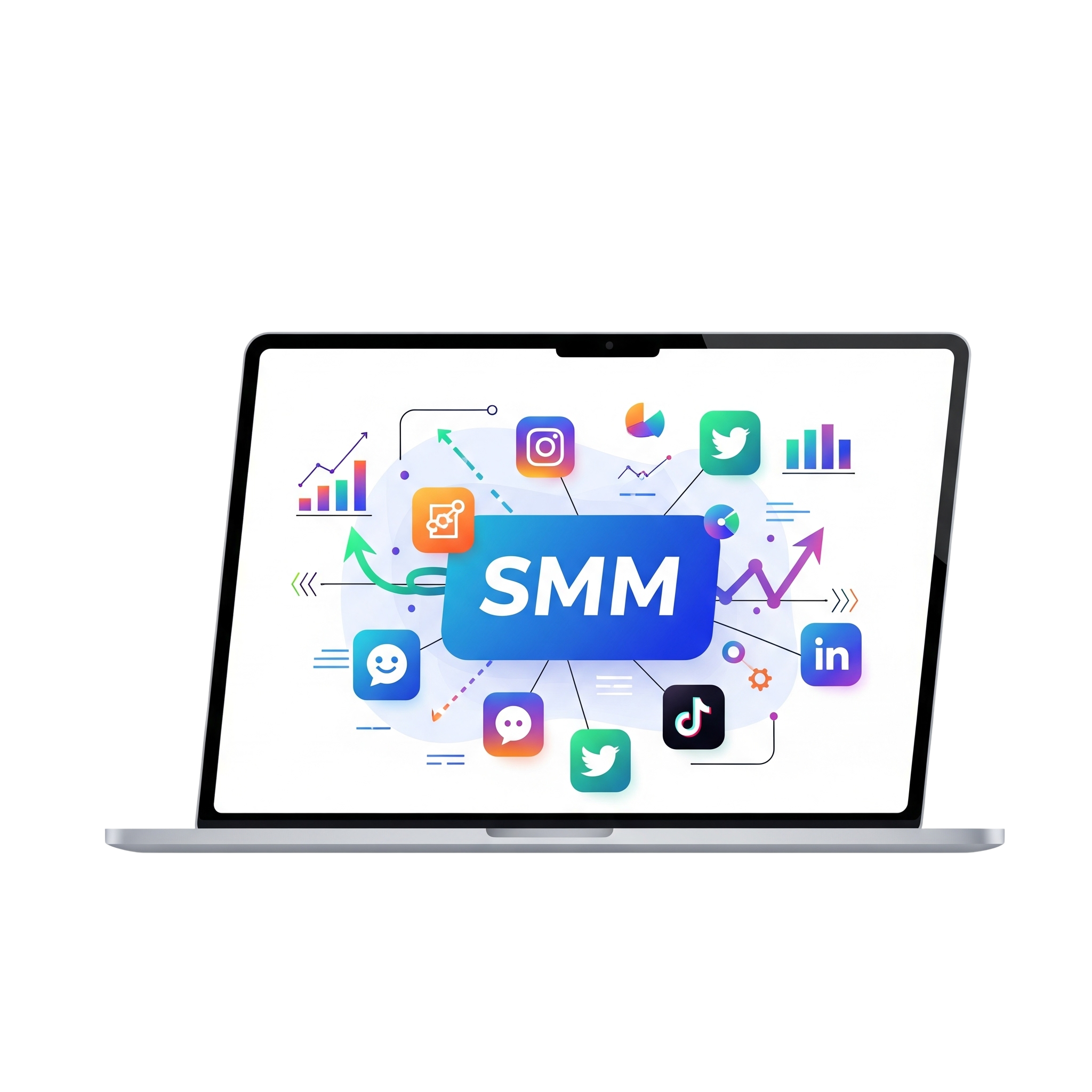 Social Media Marketing (SMM) involves promoting products, services, or brands on platforms like Facebook, Instagram, LinkedIn, and Twitter. It helps businesses build brand awareness, engage with audiences, and drive traffic through both organic and paid strategies.