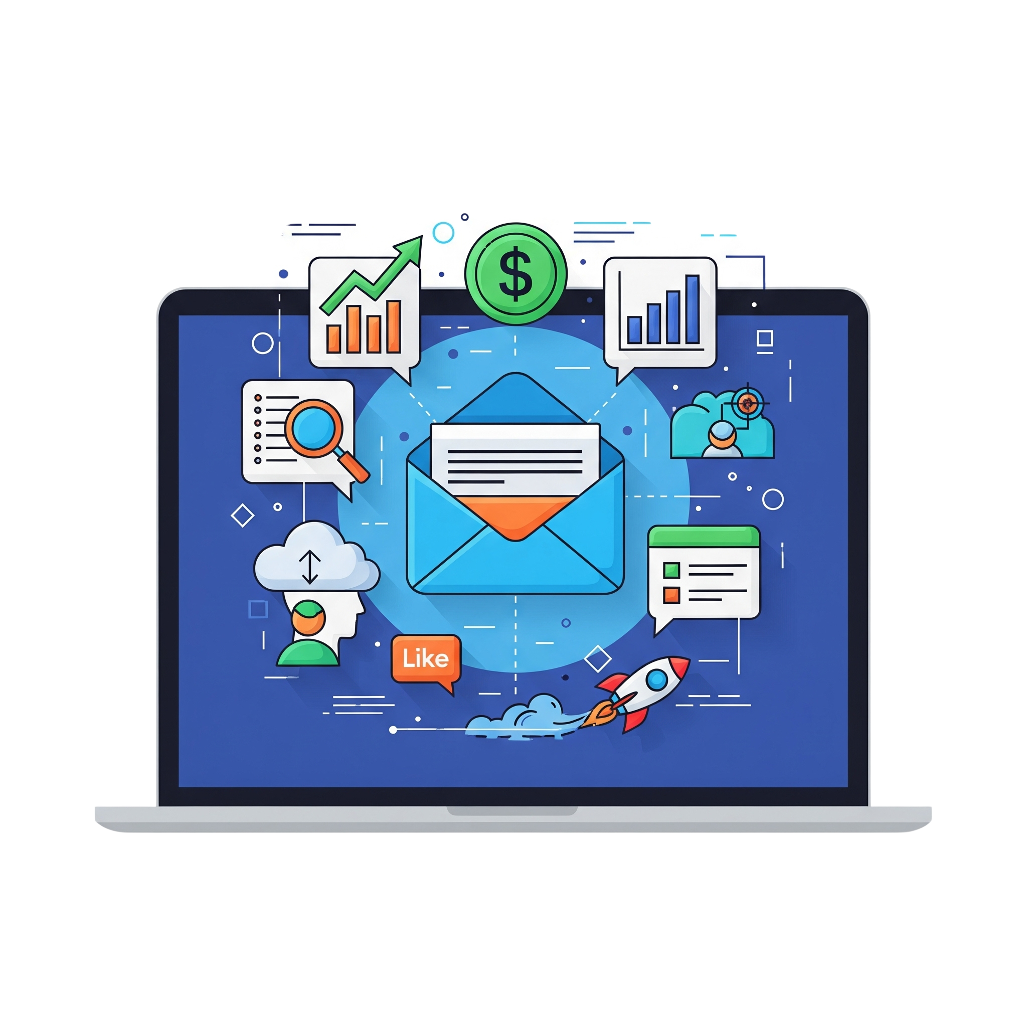 Email Marketing is the practice of sending targeted messages to a group of subscribers to promote products, services, or content. It helps nurture leads, build customer relationships, and drive conversions effectively.