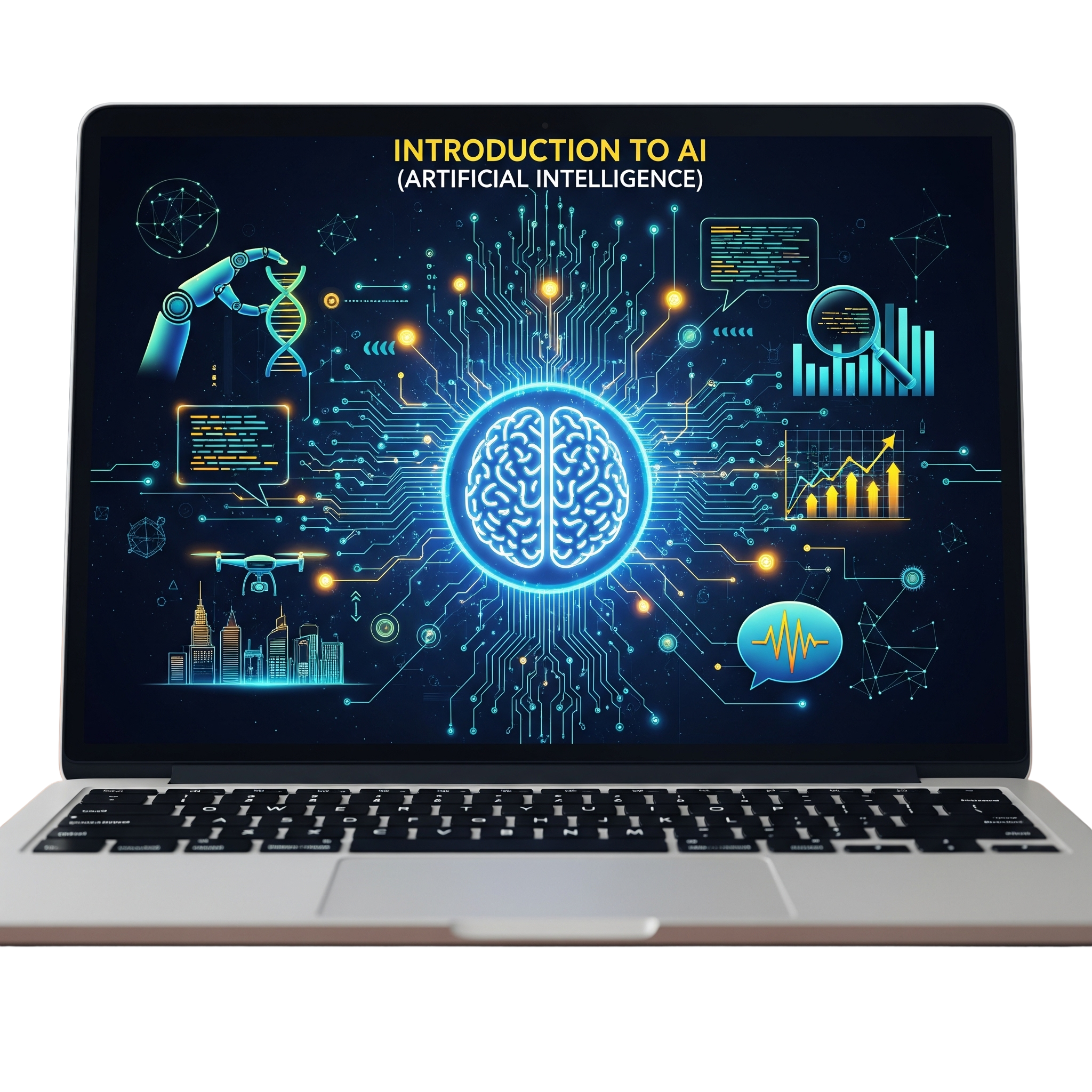 Introduction to AI covers the basics of Artificial Intelligence, including its concepts, applications, and role in automating tasks, improving decision-making, and enhancing digital marketing strategies.