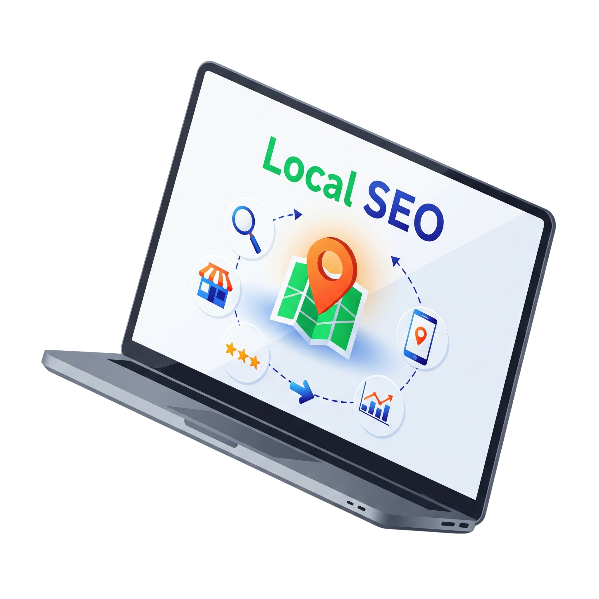 Local SEO focuses on optimizing your business for local searches, helping it appear in Google Maps and nearby search results. It targets customers in specific locations through Google Business Profile, local citations, and reviews.